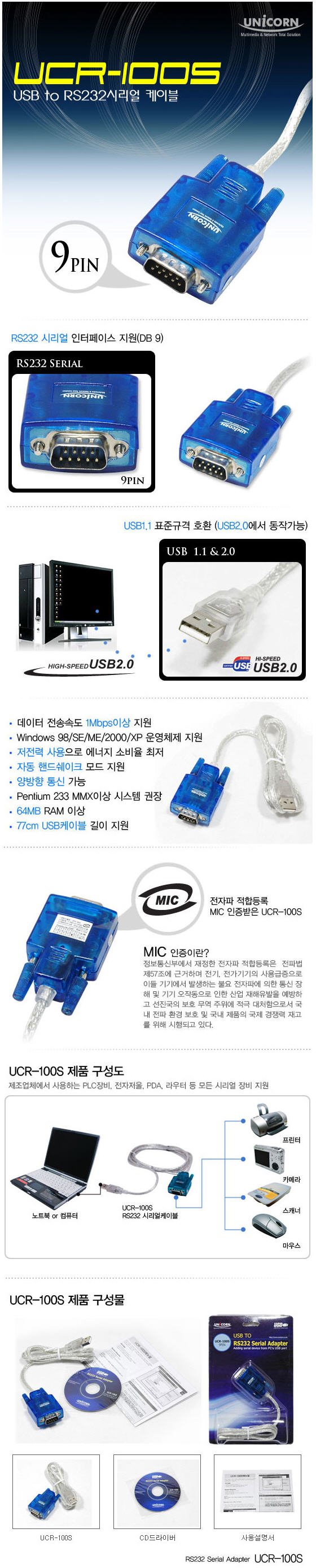 [101138]UNICORN(À¯´ÏÄÜ) USB 1.1 TO SERIAL º¯È¯±â 1Æ÷Æ® [UCR-100S]
