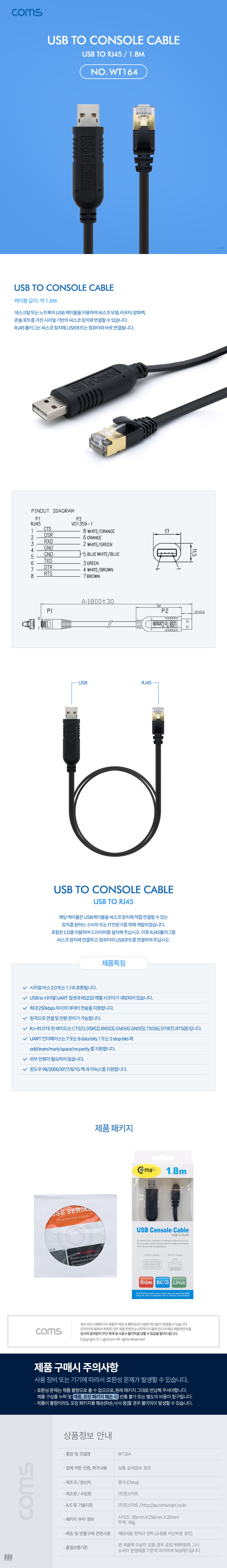 [287043]Coms(ÄĽº) USB to Console(RJ45) ÄÜ¼Ö ÄÉÀ̺í 1.8¹ÌÅÍ(1.8m) [WT164] ¿£ÆäÀÌ(alic*****) 0