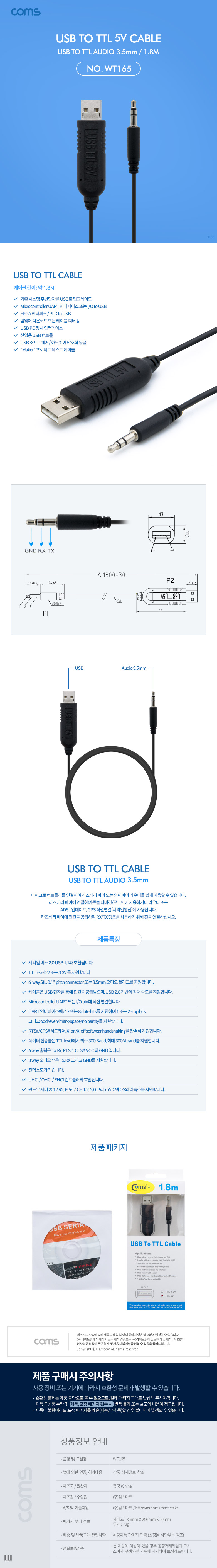 [287048]Coms(ÄĽº) USB to TTL(Audio 3.5mm) 5V ÄÉÀ̺í 1.8m(1.8¹ÌÅÍ) [WT165]