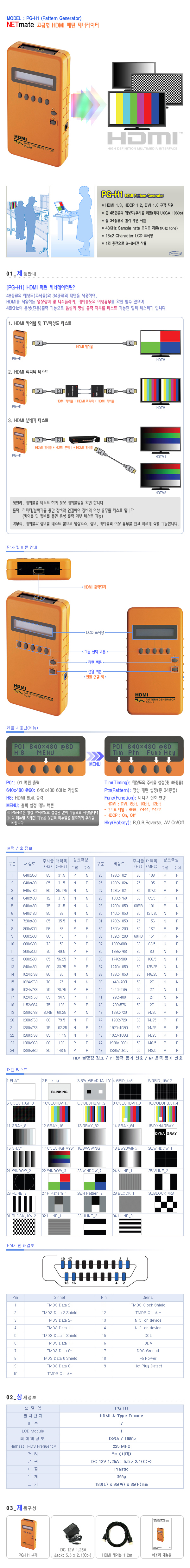 [118767]NETmate(³Ý¸ÞÀÌÆ®) HDMI Pattern Generator [PG-H1]