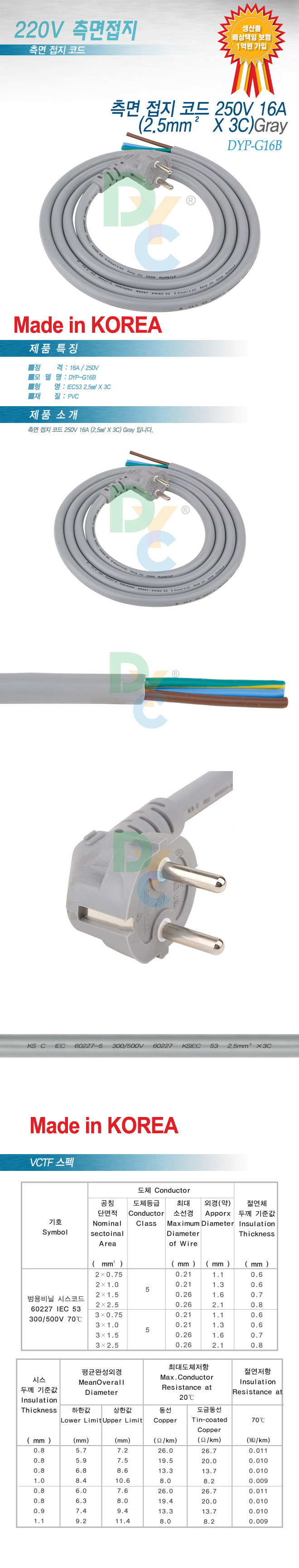 ¡á DYC(µ¿¾ç) Ãø¸é Á¢Áö ÄÚµåÄÉÀ̺í 250V 16A´Â ´Ù¾çÇÑ »óǰÀÌ ÀÖ½À´Ï´Ù ¡á