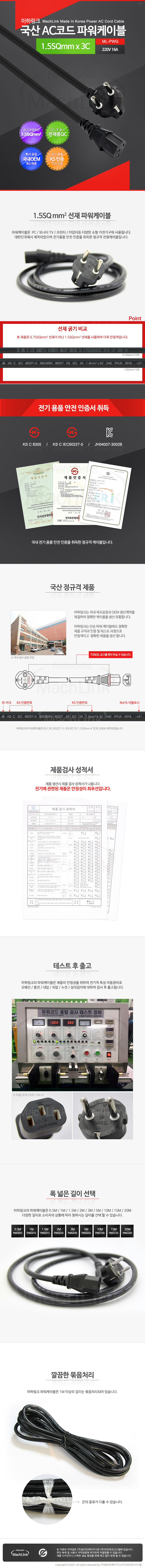 [283083]MachLink(¸¶ÇϸµÅ©) 220V(250V) 16A 1.5SQmm3C ACÄÚµå 16A ÆÄ¿öÄÉÀ̺í 1.5¹ÌÅÍ(1.5m) [ML-PWG015]