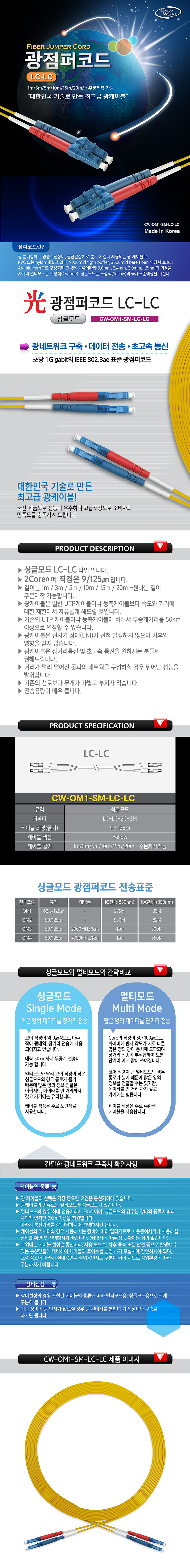 [160800]CableWorld(ÄÉÀ̺í¿ùµå) ±¤Á¡ÆÛÄÚµå ½Ì±Û¸ðµå ÄÉÀ̺í [LC-LC-2C-SM(OM1 1G)] 150¹ÌÅÍ(150m)
