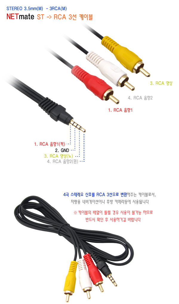 ¡á ³Ý¸ÞÀÌÆ® 3.5½ºÅ×·¹¿À to 3RCA ÄÉÀ̺íÀº 1.5m / 3m / 5m / 10m°¡ ÀÖ½À´Ï´Ù ¡á