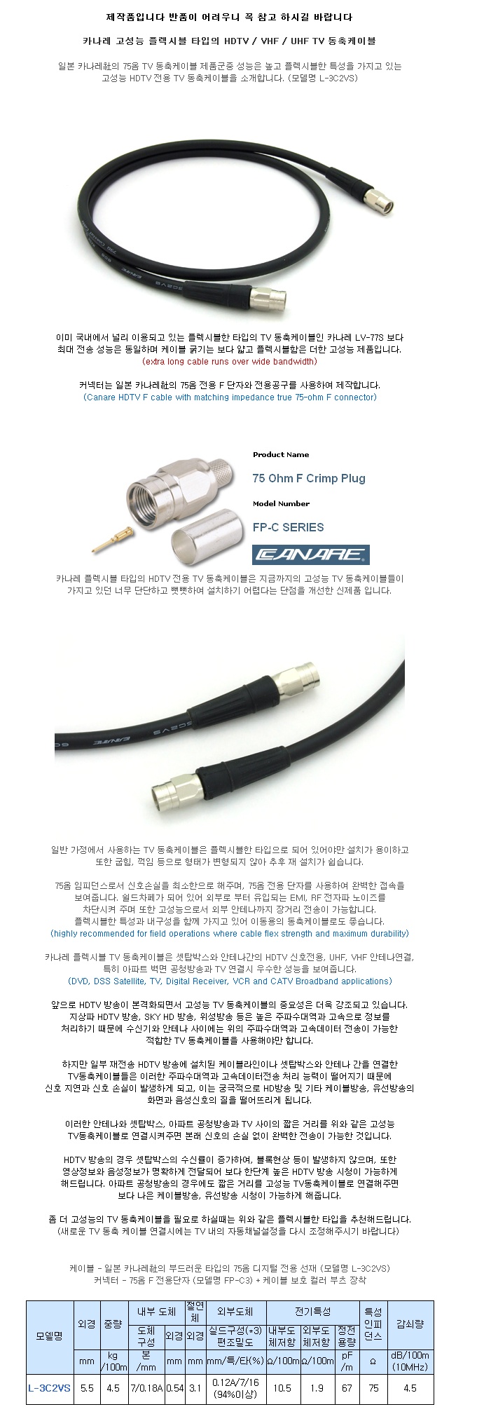 ¡á CANARE(Ä«³ª·¹) ½½¸² Ç÷¢½Ãºí RF ¾ÈÅ׳ª ÄÉÀ̺íÀº 1m~50m±îÁö ÀÖ½À´Ï´Ù ¡á