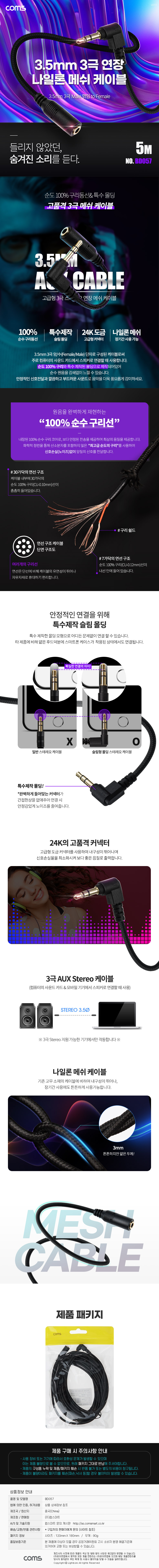 [303258]Coms(ÄĽº) 3±Ø ¿¬Àå ¸Þ½¬ ÄÉÀ̺í 3.5mm 3±Ø ¼ö(M) ²ªÀÓ to F AUX ½ºÅ×·¹¿À ¿¬Àå, ¼ø¼ö ¹«»ê¼Òµ¿¼± »ç¿ë 5¹ÌÅÍ(5m) [BD057]
