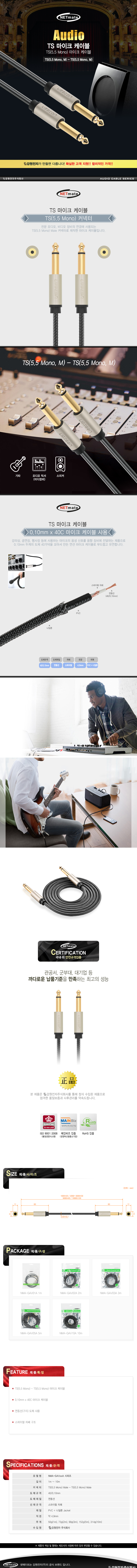 [282747]NETmate(³Ý¸ÞÀÌÆ®) TS(5.5 Mono) ¸¶ÀÌÅ© ÄÉÀ̺í 2¹ÌÅÍ(2m) [NMA-GAV02A]