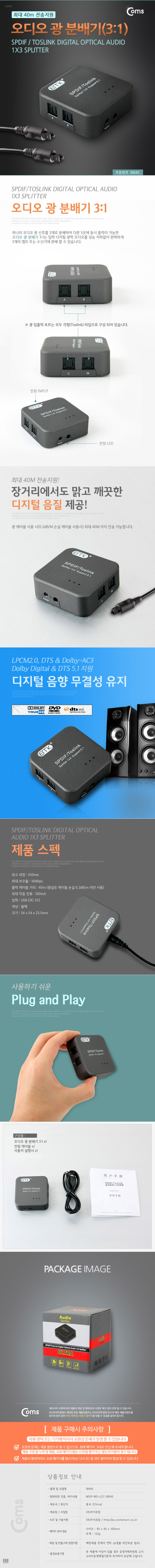 [169658]Coms(ÄĽº) ¿Àµð¿À±¤ ºÐ¹è±â 3:1 [IB045]