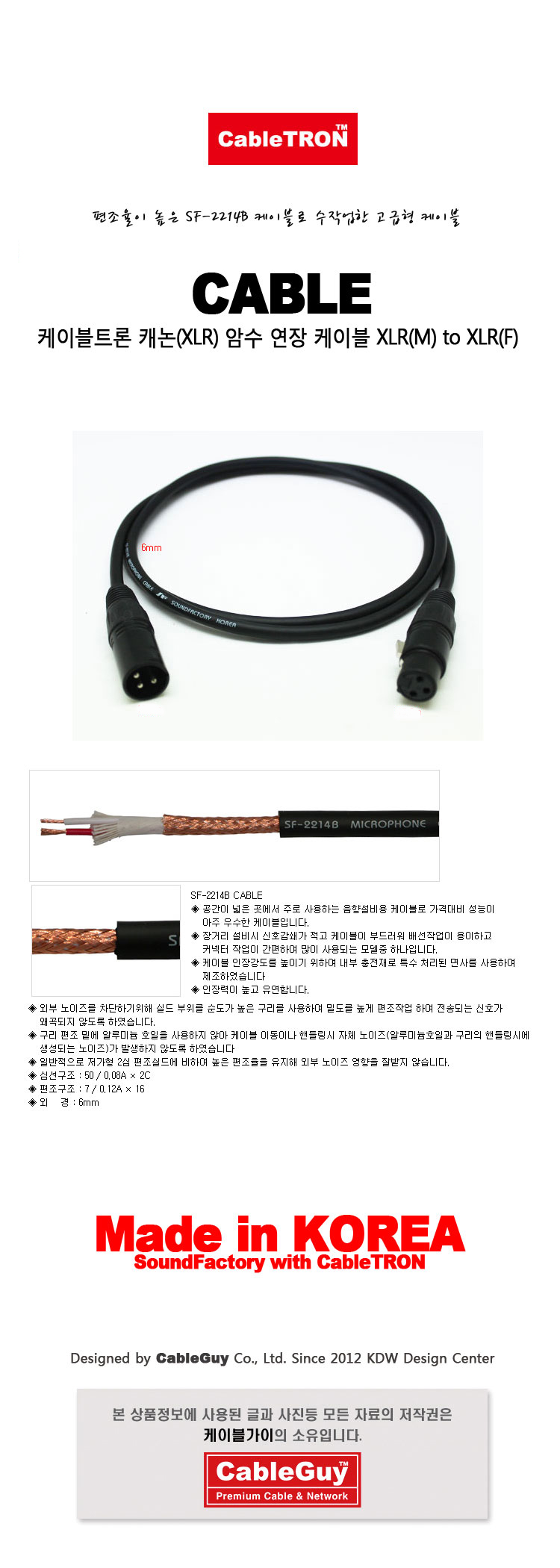 [137138]CableTRON(ÄÉÀÌºíÆ®·Ð) SF-2214B ij³í(XLR) ¾Ï¼ö ¿¬Àå ÄÉÀ̺í XLR(M) to XLR(F) 30¹ÌÅÍ(30m)