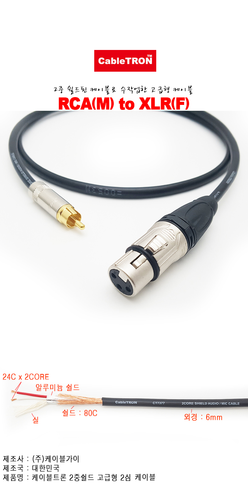 ¡á CableTRON(ÄÉÀÌºíÆ®·Ð) RCA(¼ö) to XLR(¾Ï) ÄÉÀ̺í´Â ´Ù¾çÇÑ »óǰÀÌ ÀÖ½À´Ï´Ù ¡á