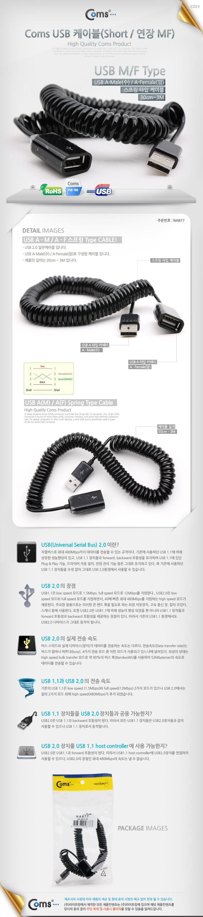 [135799]Coms(ÄĽº) USB ÄÉÀ̺í (Short/¿¬Àå MF) 0.3¹ÌÅÍ(0.3m)¡­3¹ÌÅÍ(3m) [NA877]