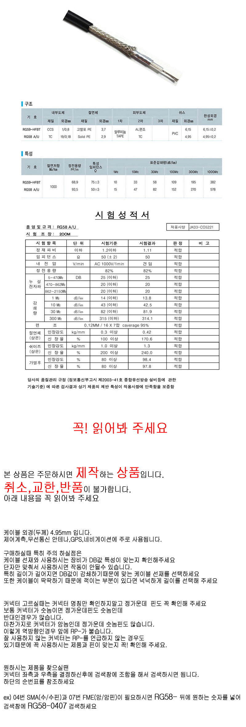 [281207]CableTRON(ÄÉÀÌºíÆ®·Ð) 50¿È RG-58 µ¿Ãà ÄÉÀÌºí ¿Ü°æ4.95mm SMA(¼ö/¼öÇÉ)¤¡ÀÚ to SMA(¼ö/¼öÇÉ) 0.1¹ÌÅÍ(0.1m)~70¹ÌÅÍ(70m) [RG58-0104]