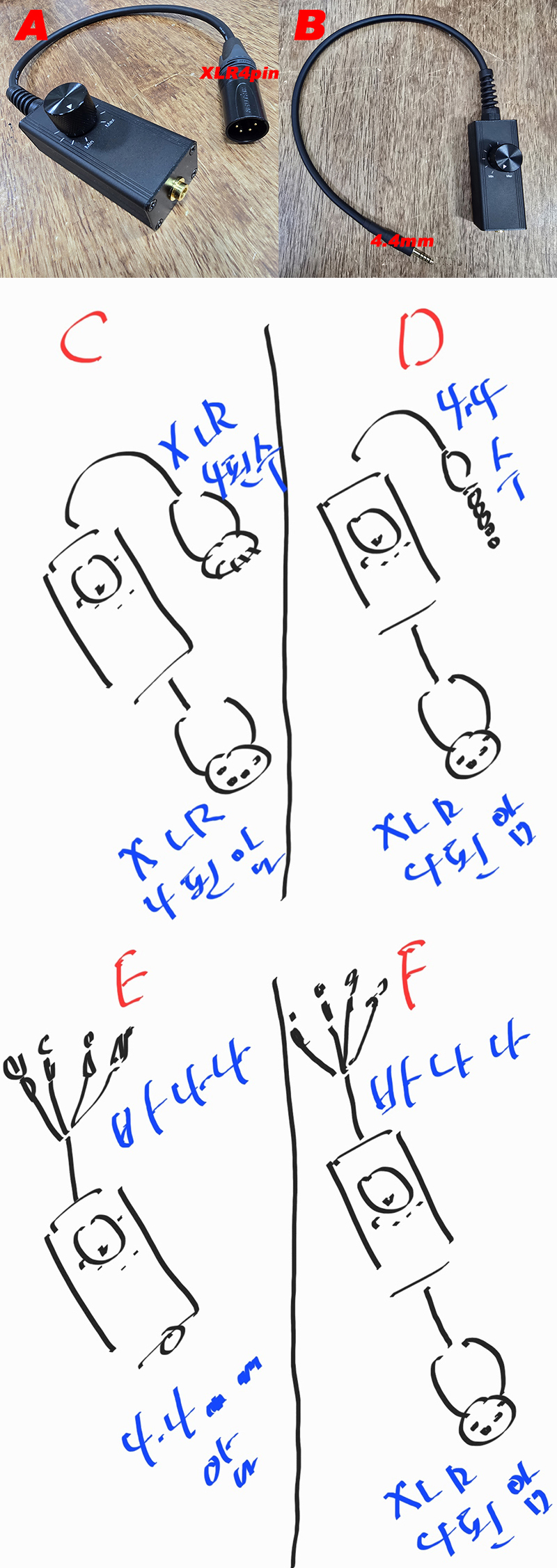 ȳϼ. ̺ Դϴ. ֹϽǶ ɼǿ Ͻô Ÿ ּ. A 4.4mm to XLR4 B 4.4mm to 4.4mm C XLR4 to XLR4 D XLR4 to 4.4mm E 4.4mm to ٳ F XLR4 to ٳ G 4.4mm to 6.35mm